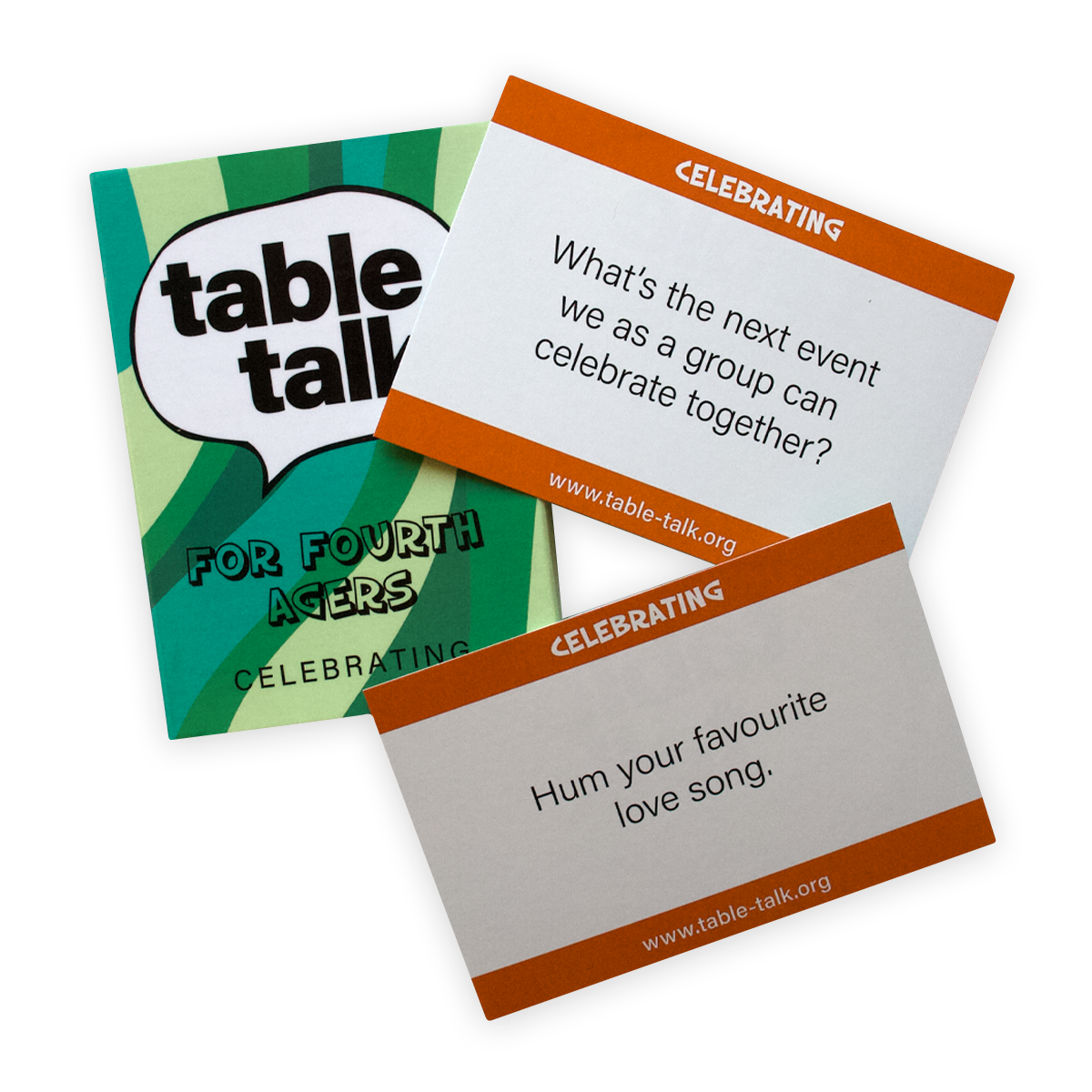 Table Talk for Fourth Agers is aimed at those who are in their 80s and beyond, giving them an opportunity to reflect on life's 'ups and downs', and to share the wisdom and experience gained over the years. Table Talk aims to help people build friendships, open up, and enjoy sharing life experiences.